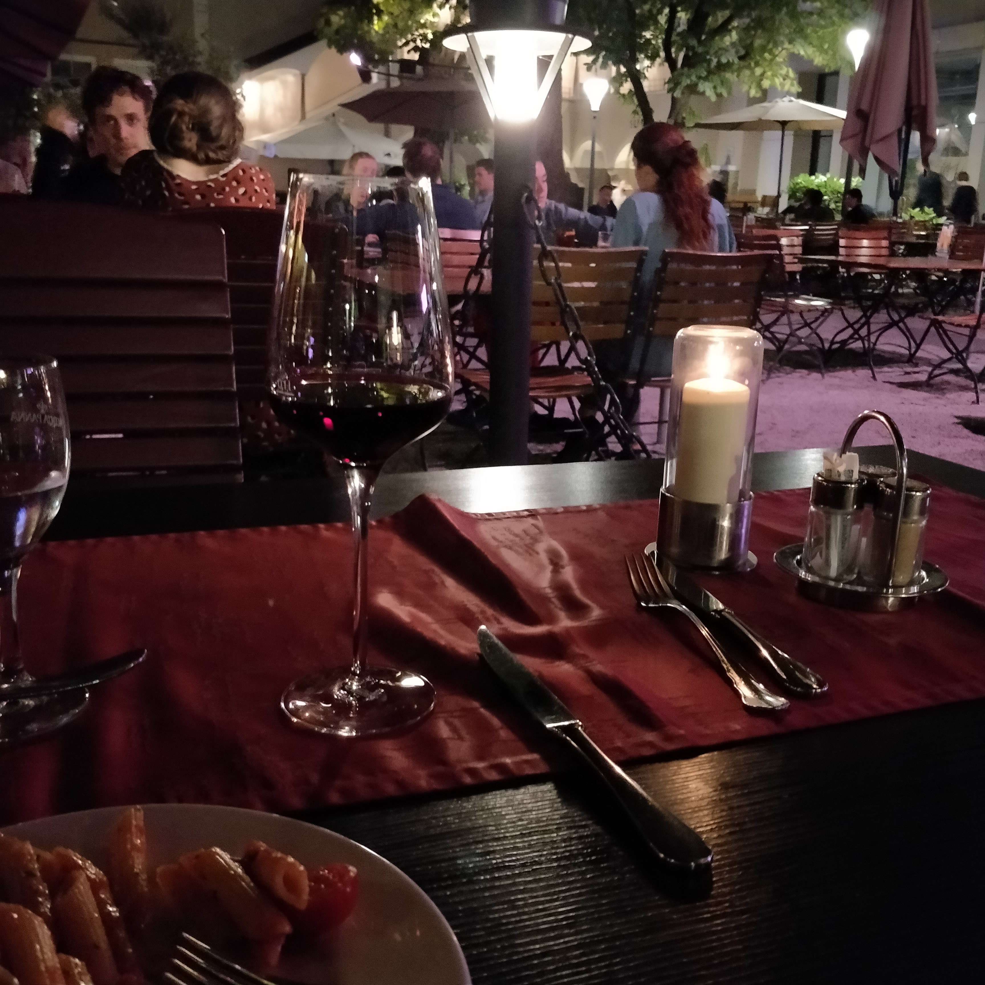 Penne arrabiata at a tucked-away restaurant by the University Square down from the Festspielhaus. Had the lovely realization that I haven’t eaten a proper meal indoors in 9 days. Everywhere a café or bistro with outdoor seating, usually covered, and an empty restaurant inside. Also lots of outdoor high-tops which can be a nice reprieve from being in riding posture for too long.