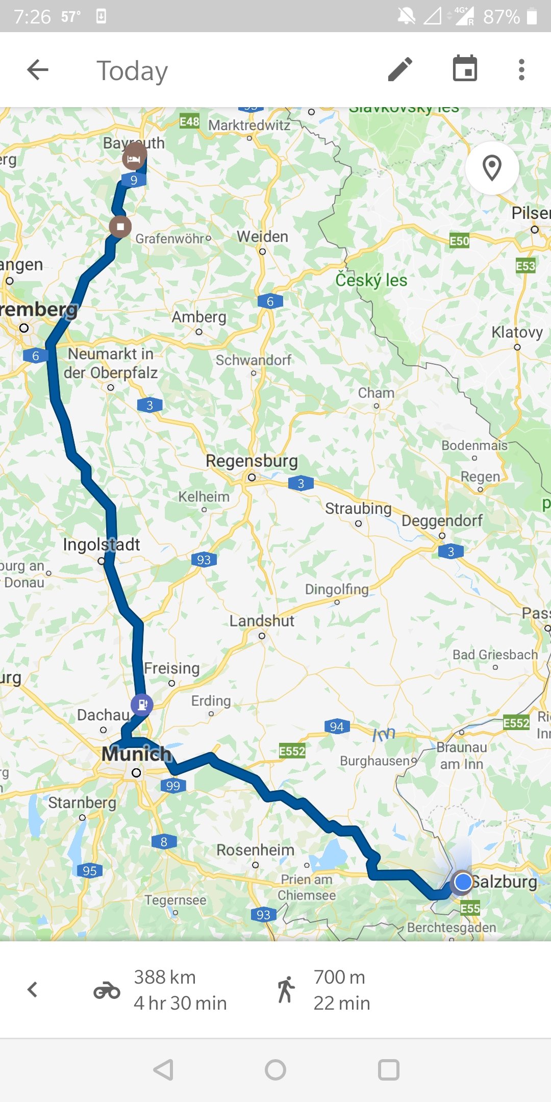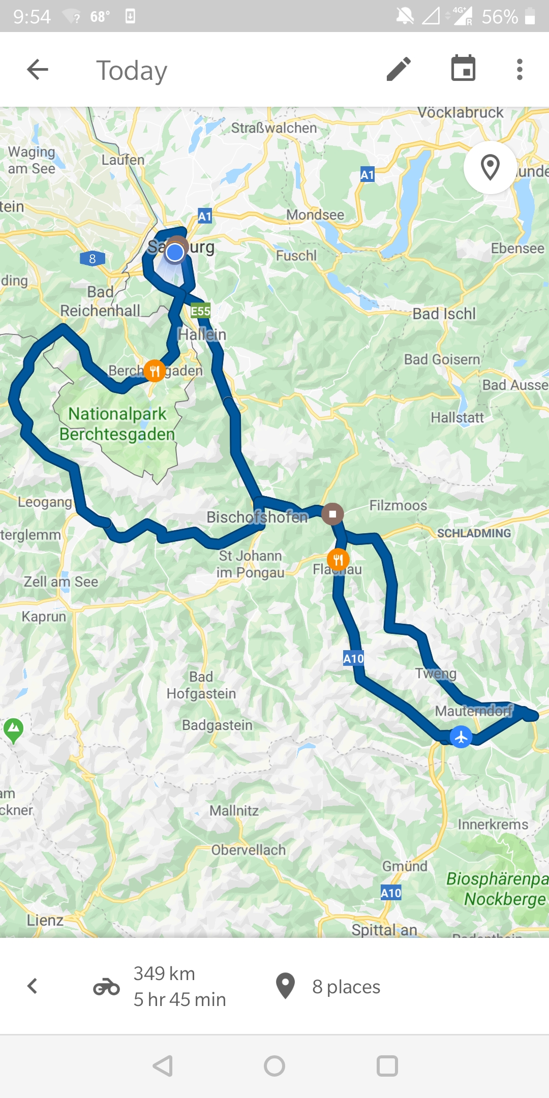 Had some spinach dumplings, salad, and a couple dunkelweiss and a jubilator. Then decided to check out the local hosteler scene, been a while since I socialized. Had a good chat with the bartender and a young German fellow who is interning in Salzburg marketing their soccer team(s). The barback offered some ideas for touring the local mountains. For lack of better thought I figured I’d go to Großglockner Hochalpenstraße, a 10k m+ road I did in 2010. But that would have been 3h in and 3h out, a big push to see one thing. I was mostly avoiding this , preferring to draw up my routes organically. So I was grateful for his advice. When I returned he was outside smoking, I showed him my GPS tracks, and he said “you went everywhere I said!” Yes, well, I must be a good listener.